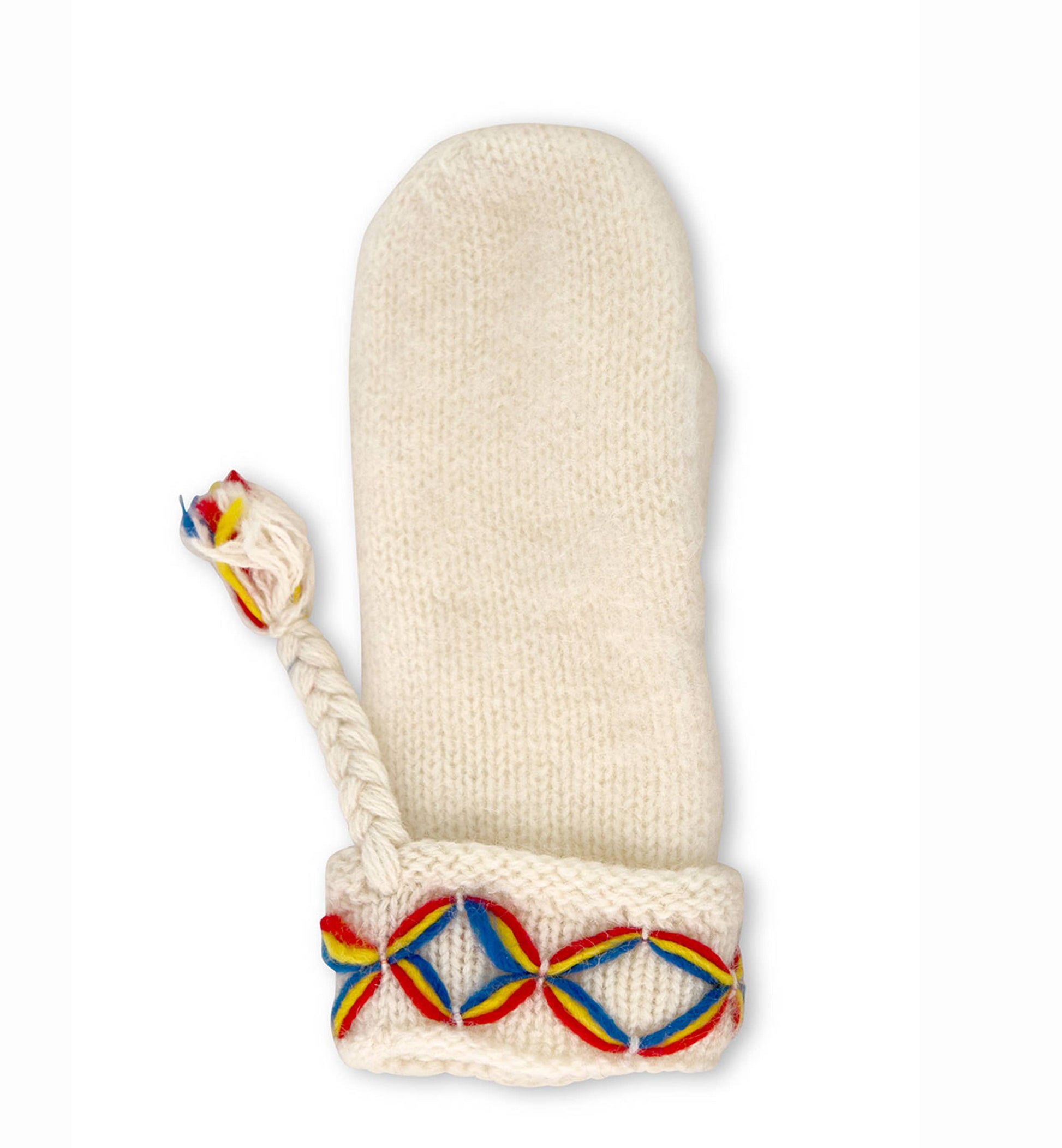 Extra varma vantar med nordiskt mönster och tofs i borstad Shetlandsull med fleecefoder och Thinsulate-isolering.